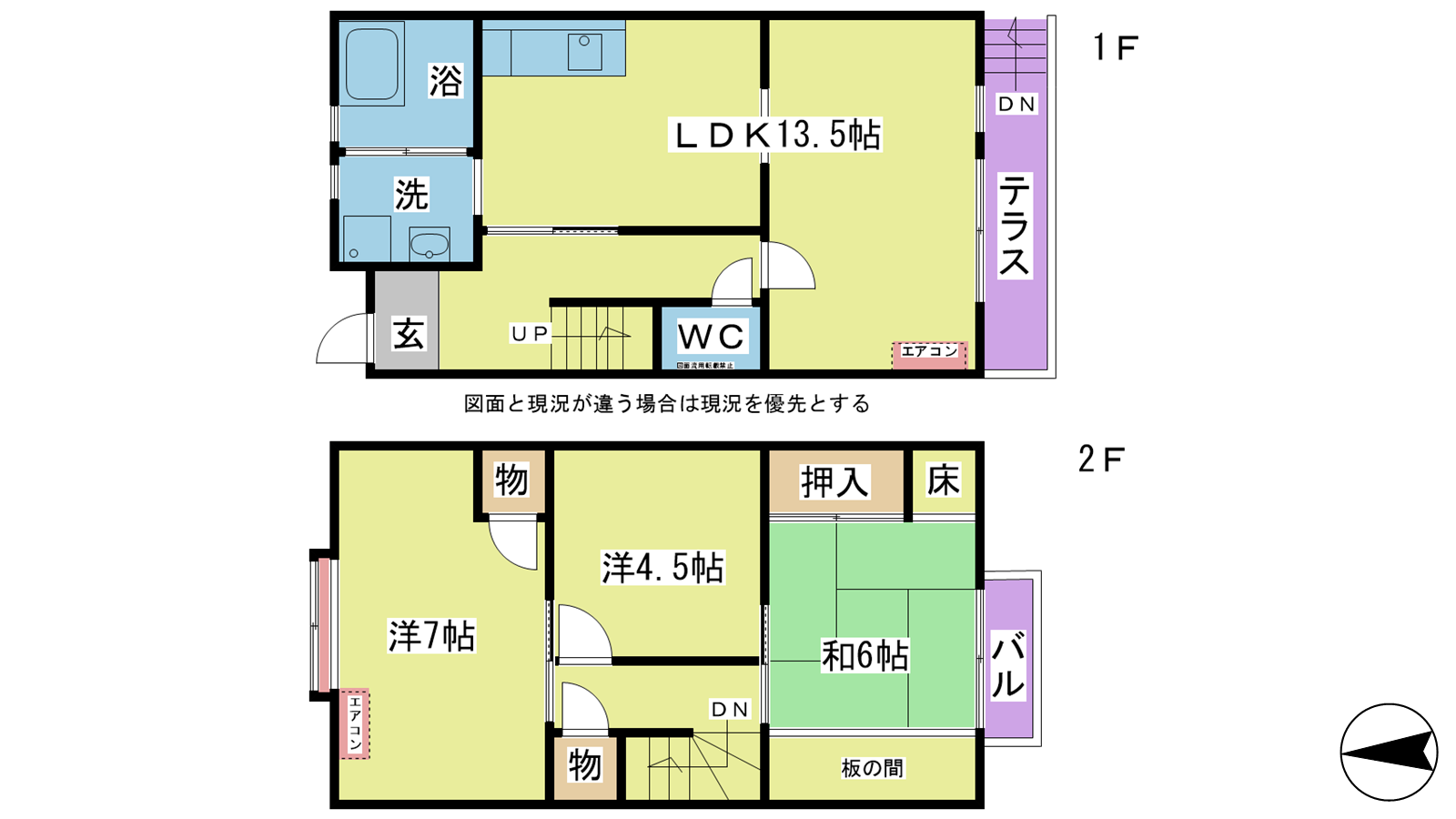 - LDK13.5帖、和室6帖、洋室4.5帖、洋室7帖
