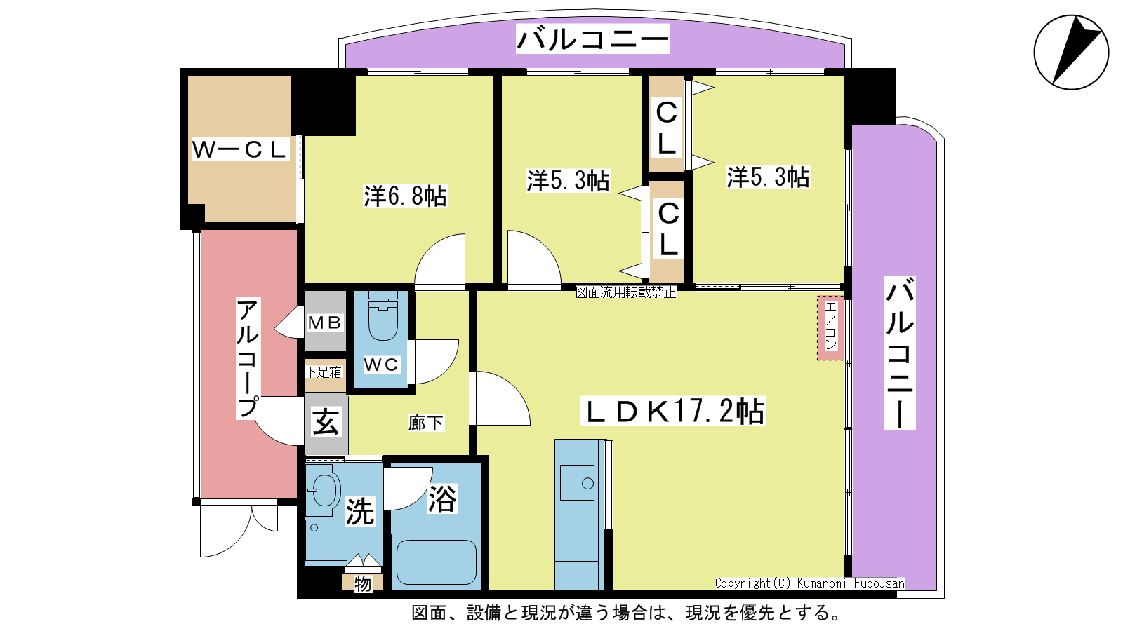 - LDK17.2帖、洋室5.3帖、洋室5.3帖、洋室6.8帖