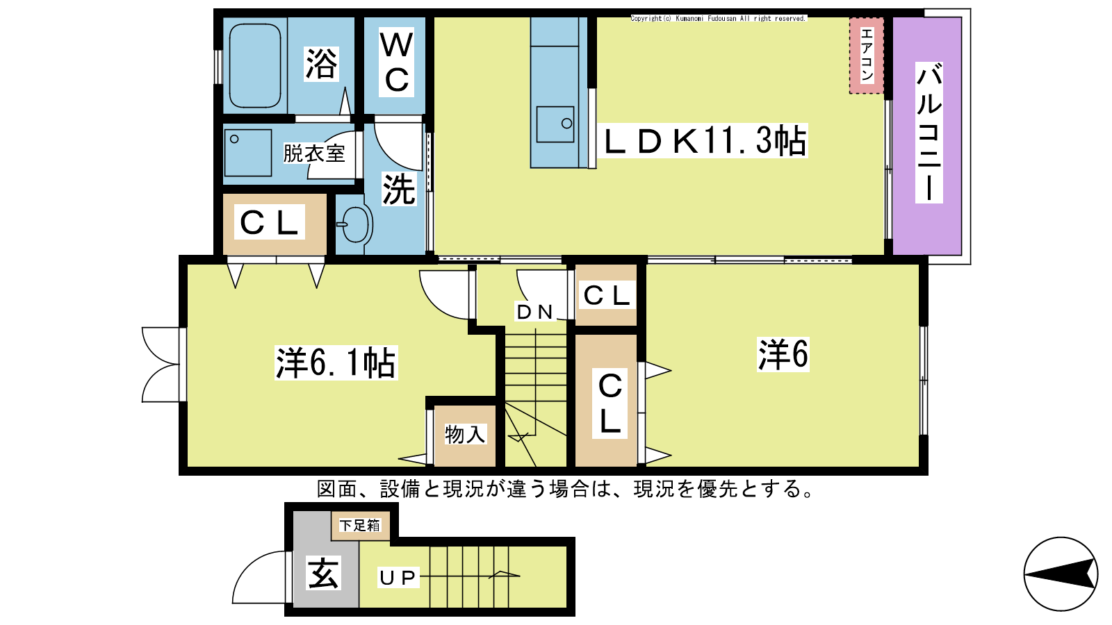 - LDK11.3帖、洋室6帖、洋室6.1帖