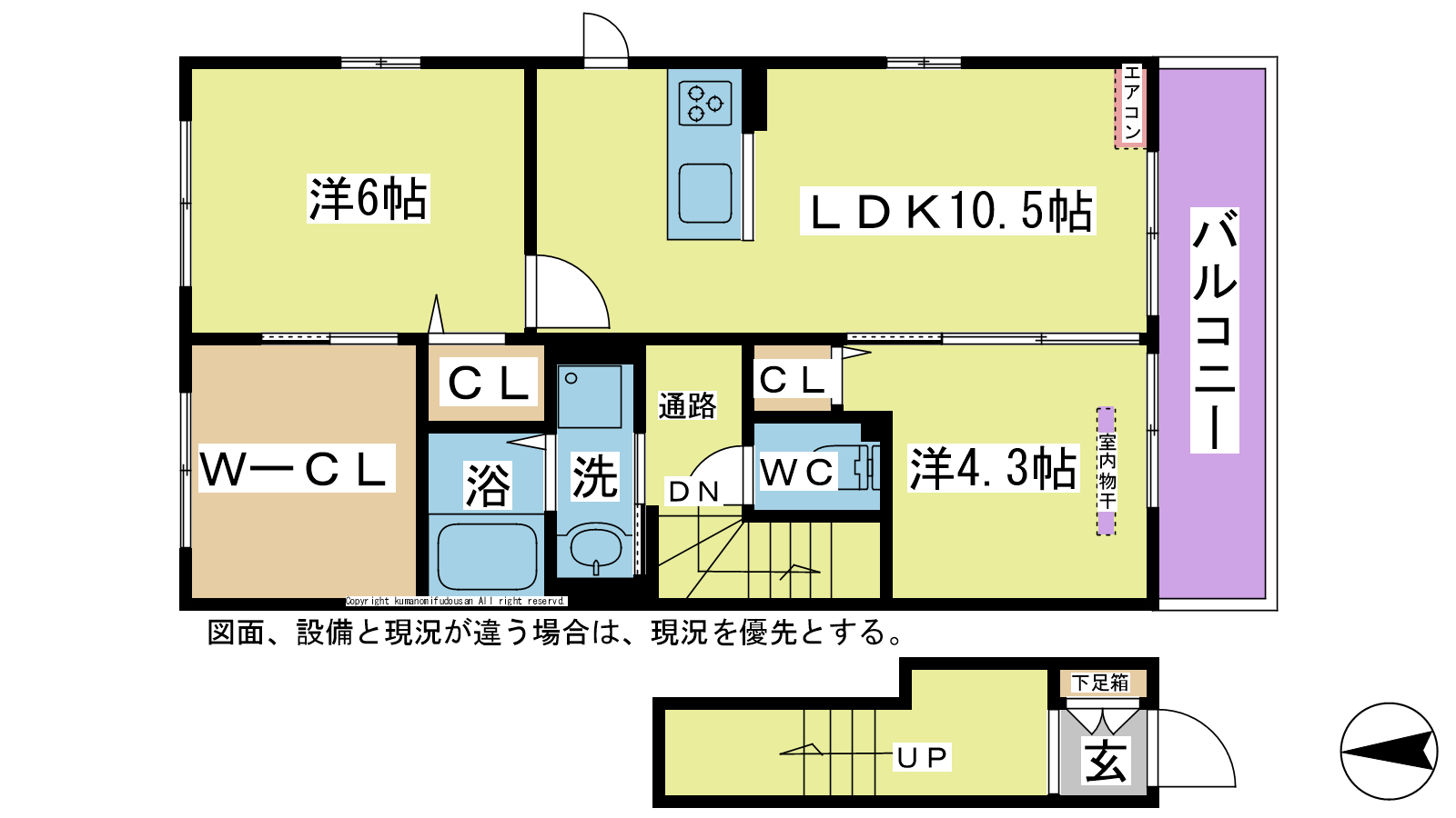 - LDK10.5帖、洋室6帖、洋室4.3帖