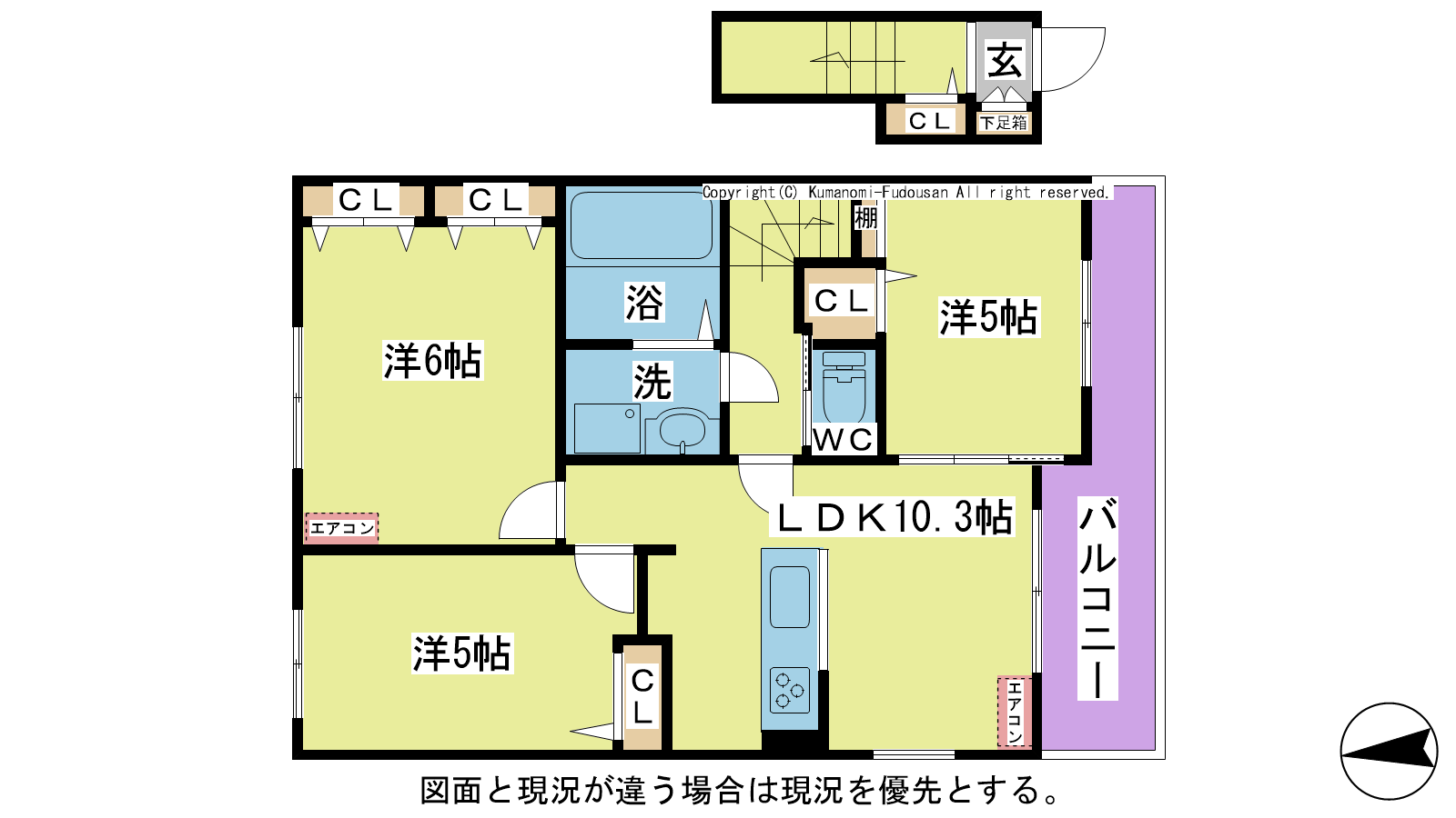 - LDK10.3帖、洋室6帖、洋室5帖、洋室5帖