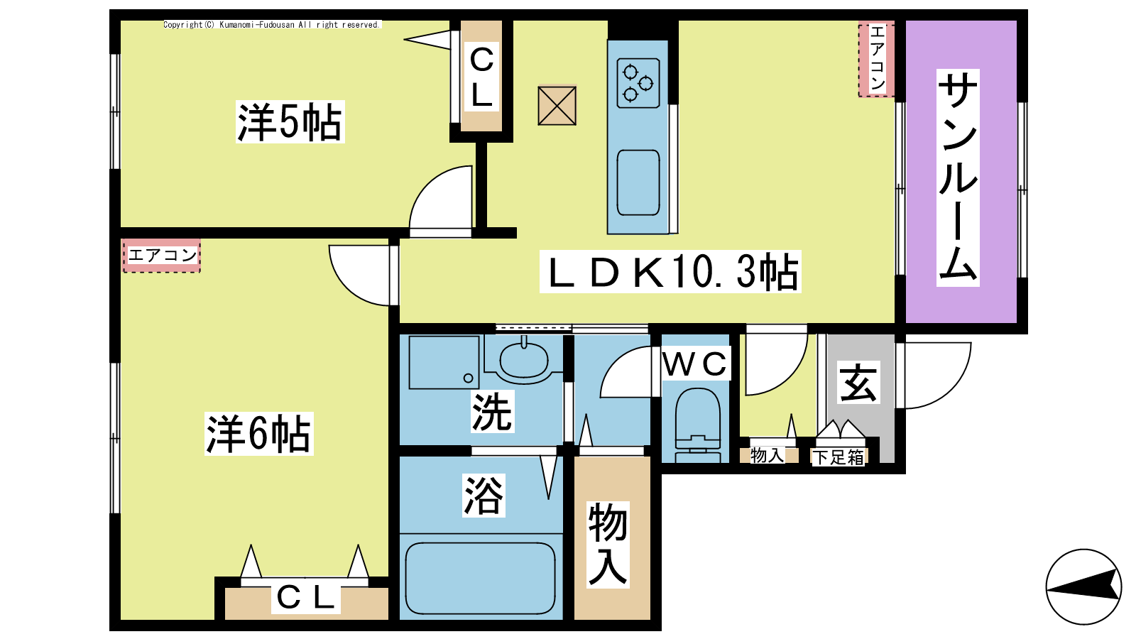- LDK10.3帖、洋室6帖、洋室5帖