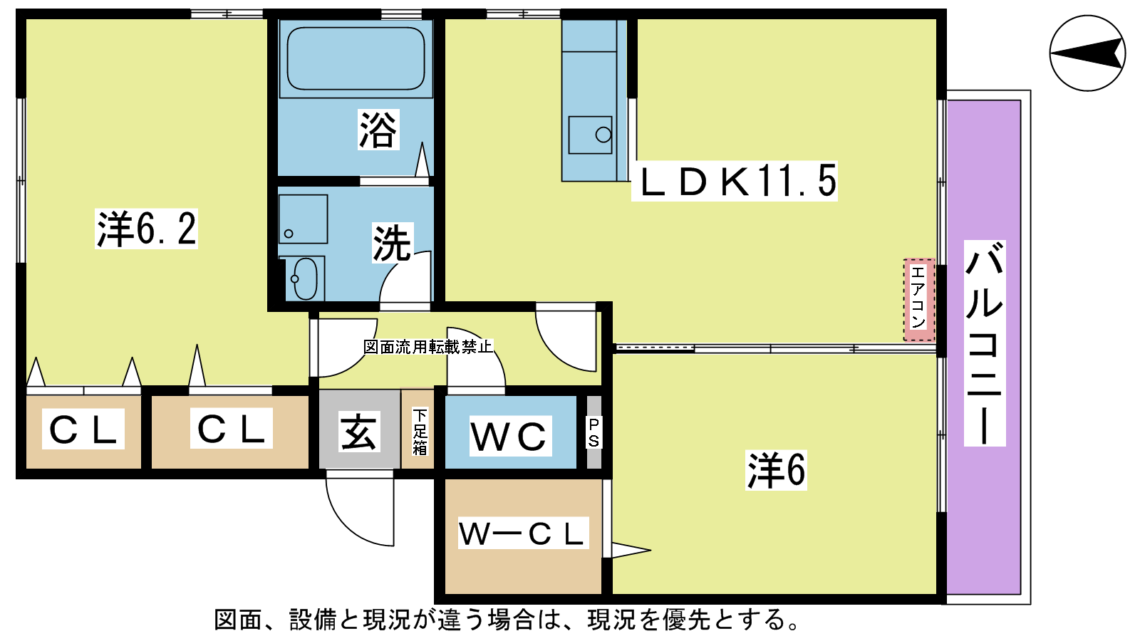 - LDK11.5帖、洋室6帖、洋室6.2帖