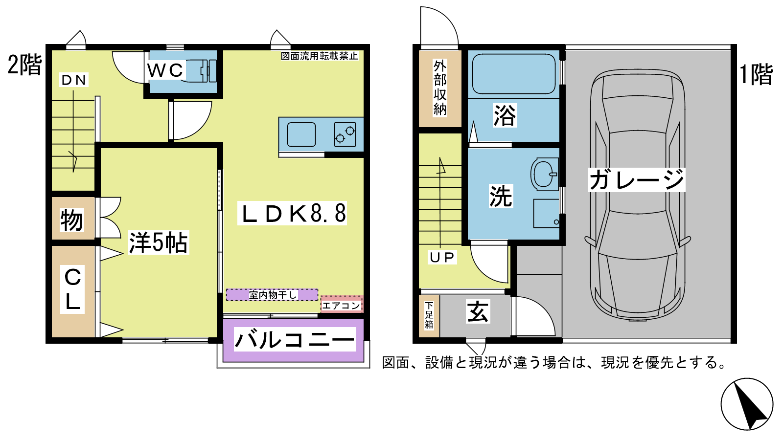 ヴァン・ヴェール三和は2018年3月完成のガレージハウスです。木造2階建、1階がガレージ、洗面所、浴室、2階が居室、リビング、キッチンとなっております。隣室とはなるべく音の問題が起きないよう、階段スペース、クローゼットで隔てられており、1階は玄関スペース、外部収納で隔てられており、プライベート空間を保てるよう配慮しております。また浴室はホーロー製(磁石利用可)なのでお掃除はし易く、換気窓と換気扇併用で湿度対策も万全です♪また2階に追焚設定パネルがあるので、冬季は、少しお湯を張ることで、事前に浴室、洗面所を暖めて置く事も可能ですよ♪ガスレンジ、換気扇整流板もホーロー製でさっと汚れが落せるお掃除し易い親切設計です♪録画機能付きモニタホンは不在時でも誰が尋ねて来たか?一目瞭然♪室内物干しは人が訪ねて来た時でもささっと簡単に折りたたみできるタイプです♪冬季にはガス会社からガスファンヒーターを無料レンタルでき、灯油ファンヒーターよりもお手入れが楽々で、ペアガラスなので熱もちは冷房、暖房ともに秀逸です♪照明器具は全部LED照明がついており、光熱費の節約に一役買っていますよ♪1階は外部収納とガレージ水道栓があり、別途、平置きの駐車場が付いています♪設備は、1坪タイプ浴室、追焚機能、シャンドレ、外部収納、ガレージ水道栓、下駄箱、温水洗浄便座、カウンターキッチン(システム)、エアコン、クローゼット、LED照明、録画機能付モニタホン、折りたたみ式室内物干、バルコニー、ペアガラス、ガス栓(ガスファンヒータを使用する場合)、CATV(財津テレビ共同組合)、駐車場2台分(ガレージ&外部駐車場)、