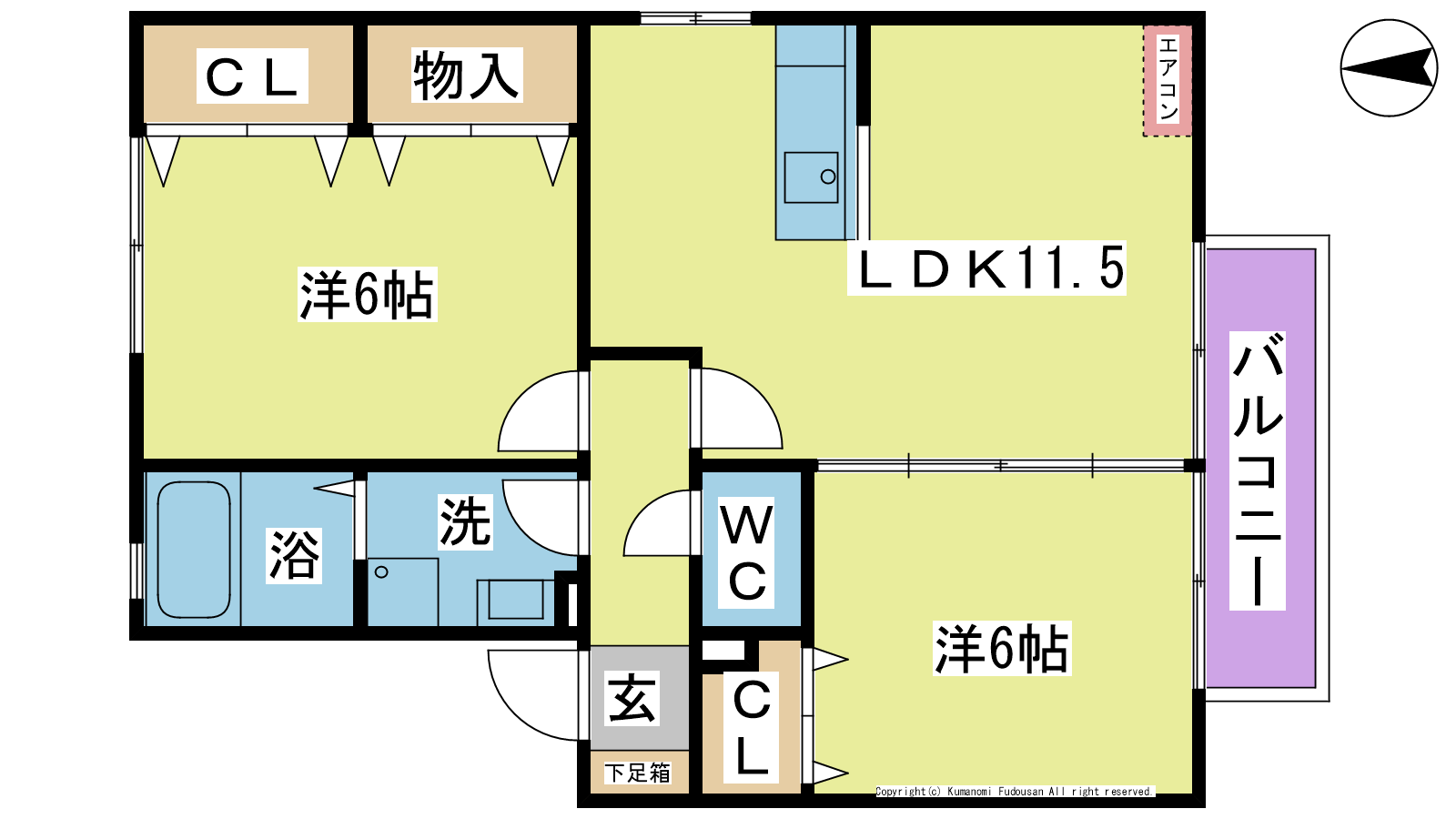 - LDK11.5帖、洋室6帖、洋室6帖