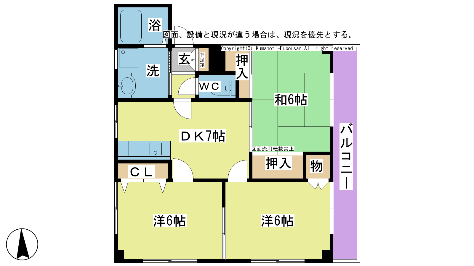 - DK7.5帖、洋室6帖、洋室6帖、和室6帖